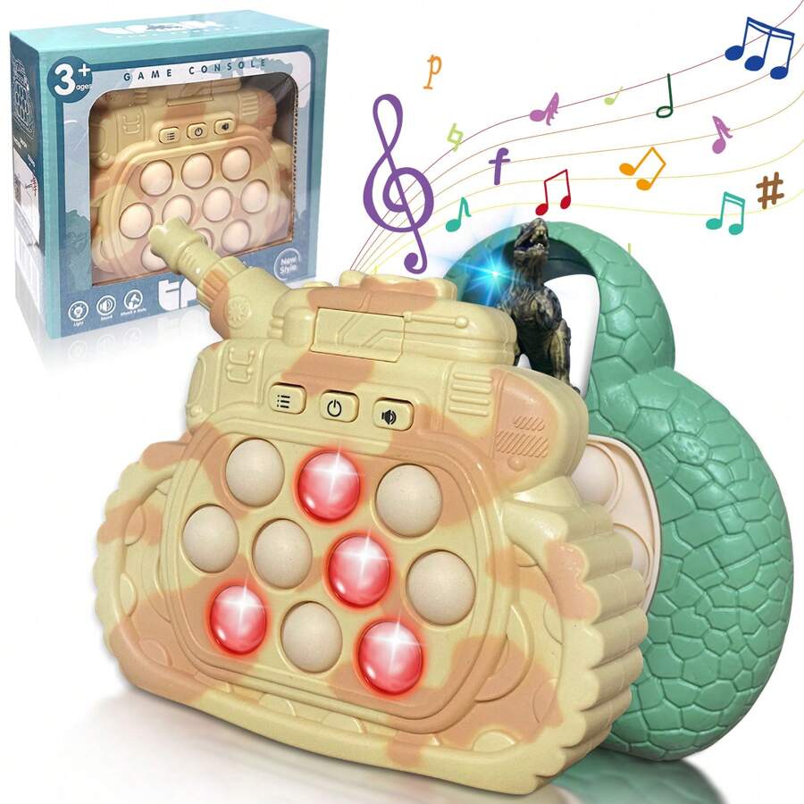 2 Pieces Kids Push Game Toys (Dinosaur, Tank), Push Bubble Game, Handheld Educational Game Sensory Toy, Push Game Light Up Fidget Toy, Suitable For 3-12 Years Old Girls Boys