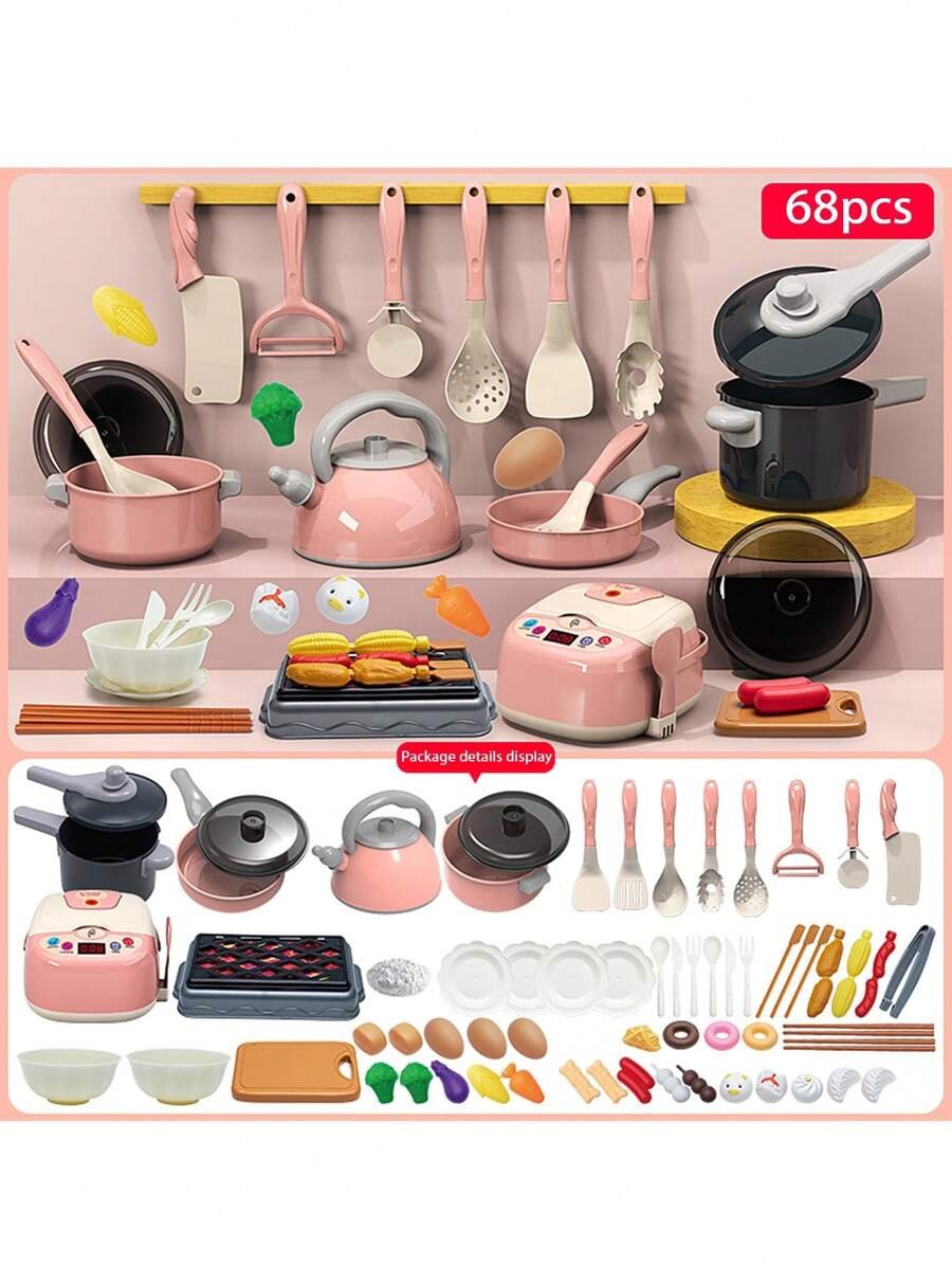 68pcs/93pcs Pink/Red/Green Play House Kitchen Toy Girl Little Chef Role-Playing Toy Pot Cutter Simulation Cooking Cooking Set,Toys For Girls,Kids Toys,Kitchen,Wooden Play Food,House Toys,Cooking Set Kids