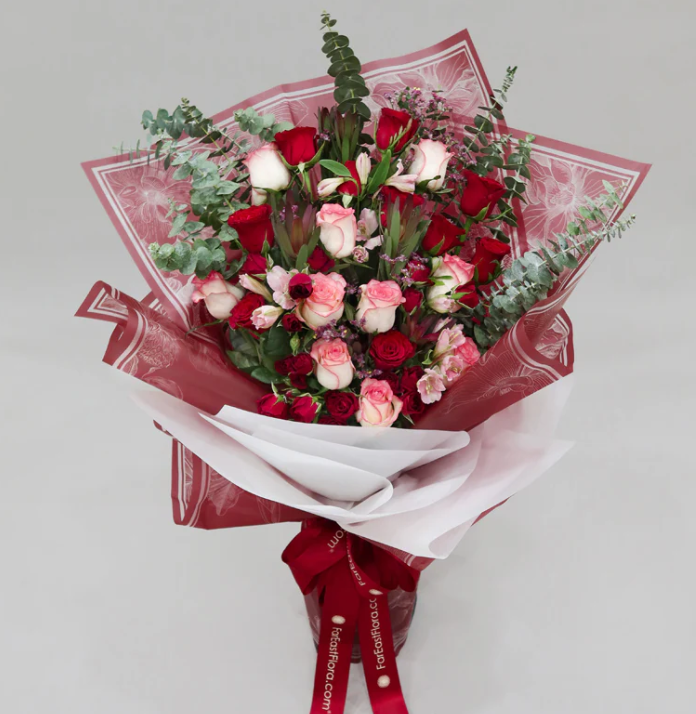 Celebrate love and passion with this Radiant Romance bouquet. This magnificent arrangement features 20 Roses, beautifully accented by fragrant eucalyptus leaves, wrapped in a beautiful floral wrapper at an impressive height of 85cm. Perfect for romantic gestures such as anniversaries, proposals, or any special occasion, this bouquet will undoubtedly convey your deepest feelings.