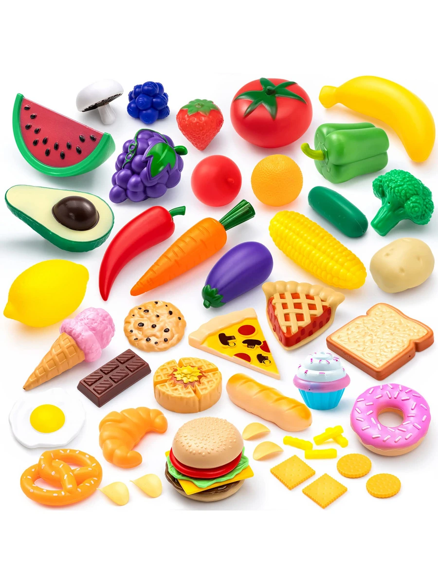 Syncfun 50 Pieces Kids’ Pretend Play Cooking Toy, Vegetables & Fruits Cutting Toy Set For Educational & Intellectual Development Kids Plastic Play Food Toys, Pretend Kitchen Playset, Fun Educational Game Accessories, Christmas Bithday Gifts Party Sup
