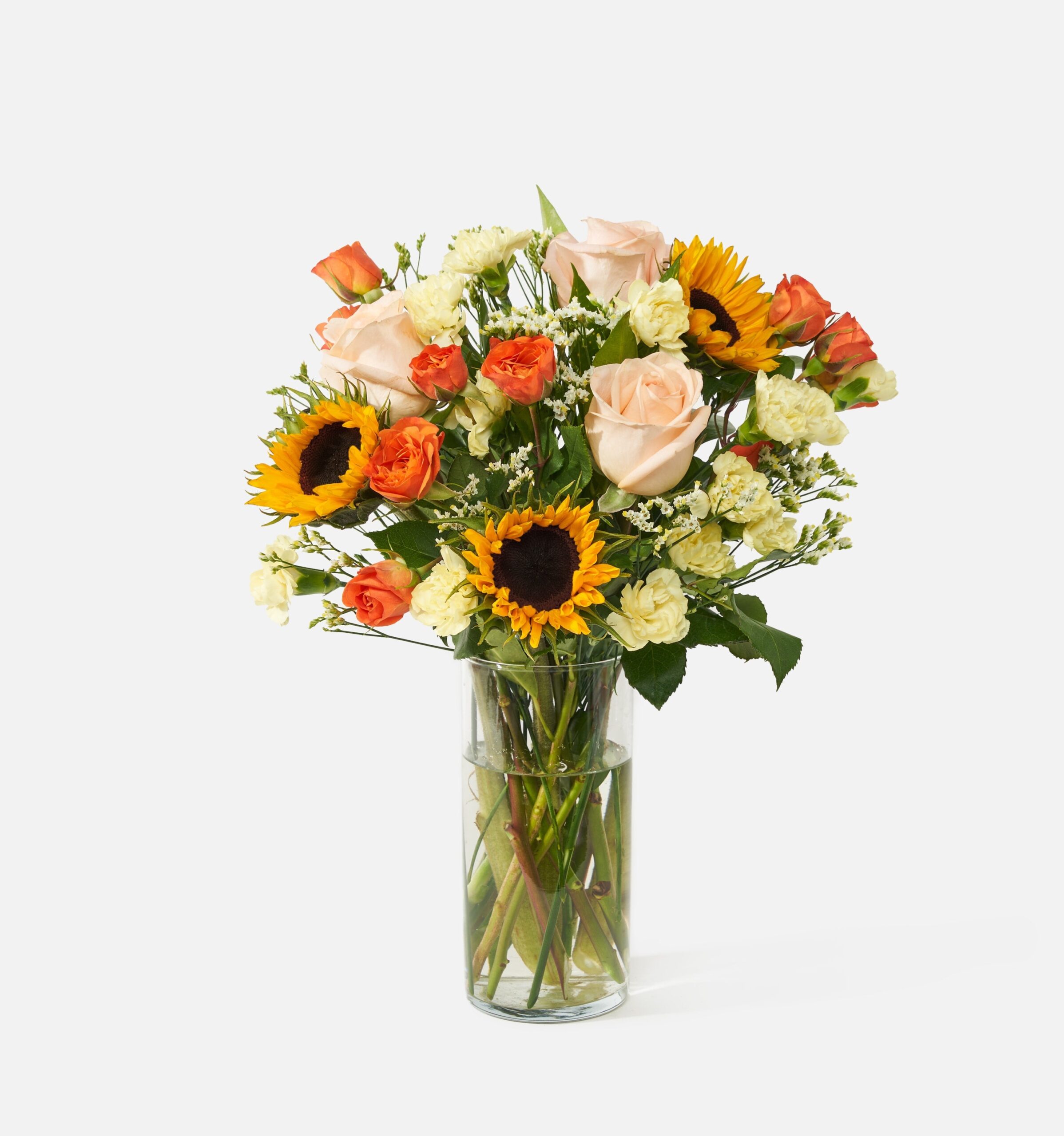 Bursting with golden sunflowers and fiery orange spray roses, The Summer Glow is basically a party in bouquet form. Bright, bold, and impossible to ignore—it’s made for birthdays, big moments, or just bringing the vibe. Think sunshine with a side of confetti. Instant mood boost included.